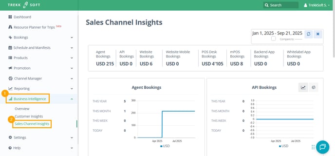 With that in mind, TrekkSoft is building the following dashboard to provide you with this information. See below how you get to this report: