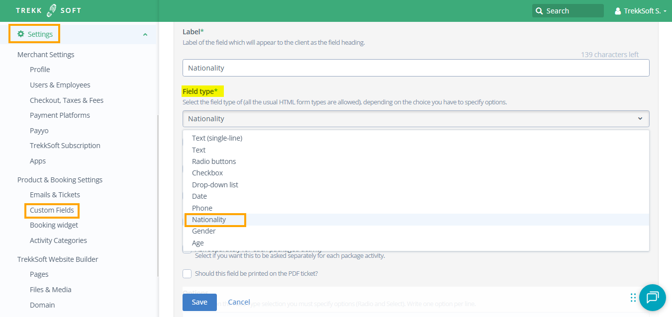 Go to Settings > Product & Booking Settings > Customs Fields > Guest.