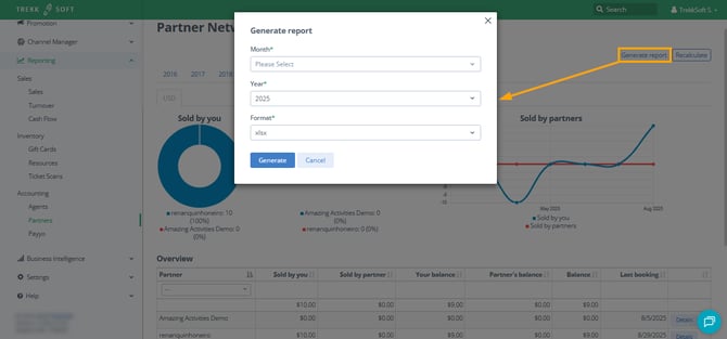 The goal of these reports is to balance your sales and invoices with your business partners depending if they refer guests to you and earn a commission or if they sell their own tickets or if they also use their own TrekkSoft account and resell your product through their system.