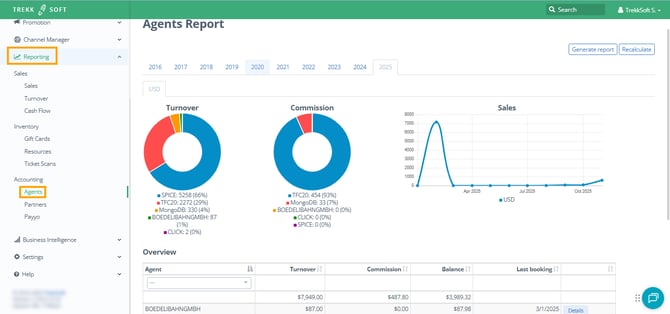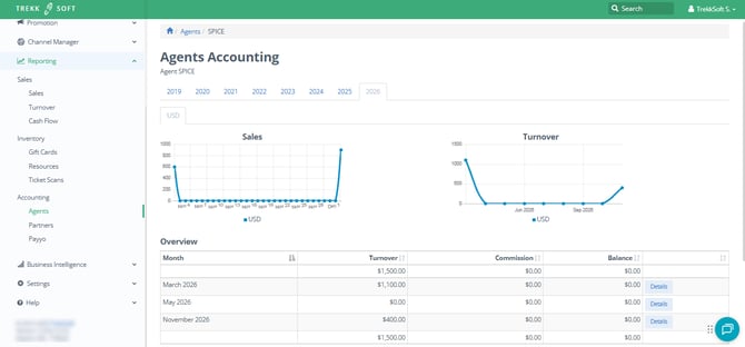 When you click on a specific agent (Details button) and see your agent’s overview. You can see the balance for each month where there are bookings.