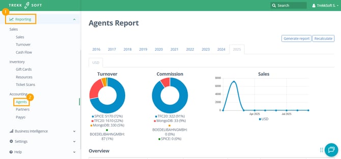 This accounting will show you all the sales done by the Agent, their commission and Invoices.