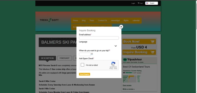 Once this option has been enabled, an inquiry button will appear on the activity page. Your customers will now be able to send your booking inquiries.