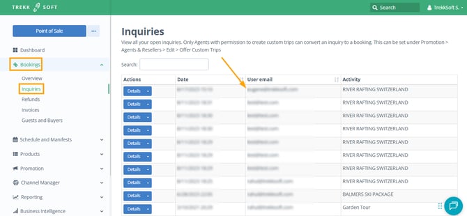 To retrieve this inquiry, go to Bookings and then Inquiries from the left side menu.
