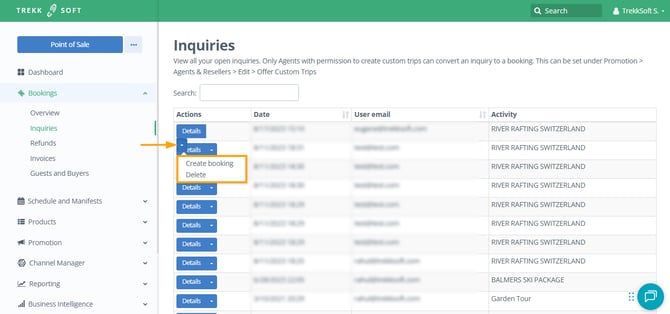 IMPORTANT ! Only Agents with the permission enabled to create a custom trip can convert an inquiry into a booking (Want to know more about permissions? Click here