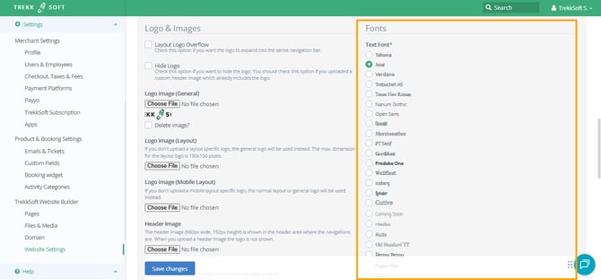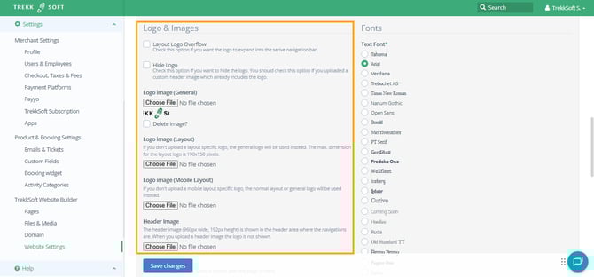 You can customize most of your TrekkSoft websites such as colors, fonts, and styles. You can also upload your logo to replace TrekkSoft’s logo which will appear as the “default” logo in the top left corner.