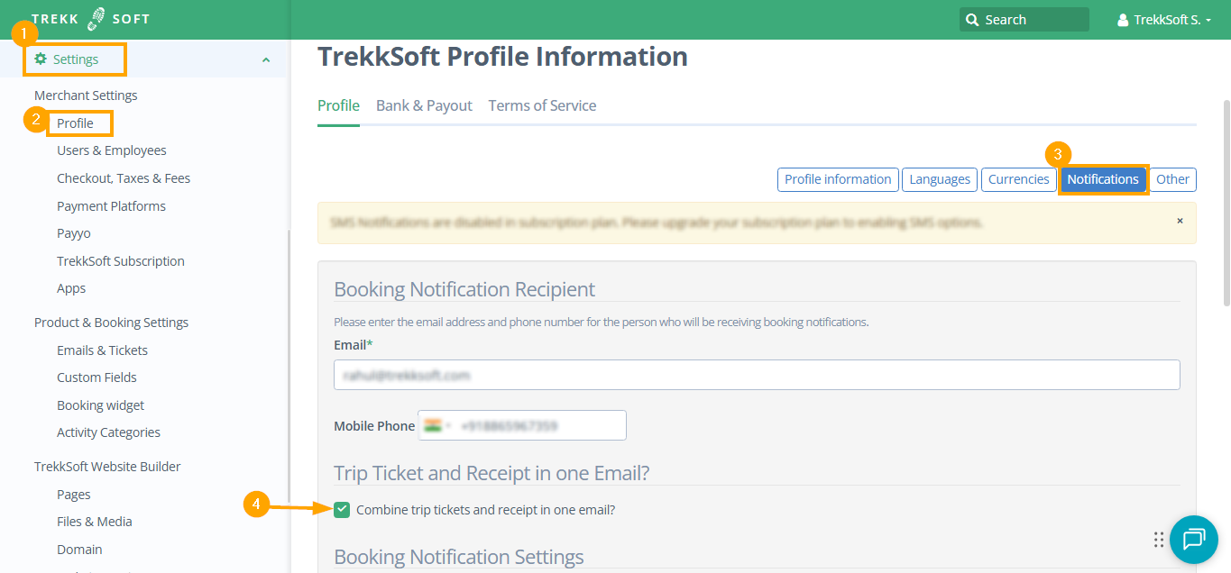 - In the notifications screen, scroll down until you see the Combine Trip Ticket and Receipt in one Email?