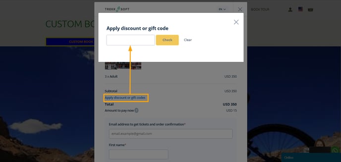 Your customers can use the Gift Cards during the booking process just before making a payment (see an example screenshot below when using Booking Widget):