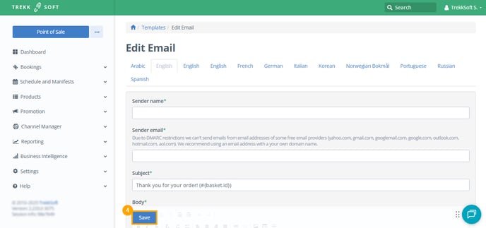 - Customize the email (add email contents, add placeholder) and finally, click Save.