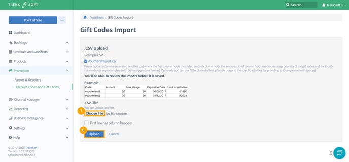 You have the option to import your own gift codes via a CSV file. This can be particularly useful if you want to sell tours/activities on discount websites like Groupon.