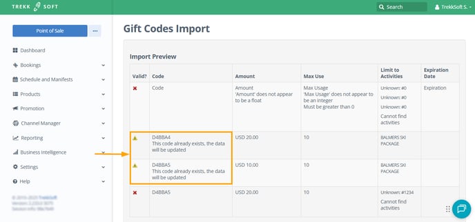 - Once you have imported the file, you will receive a preview of the codes that will be imported (see screencast below).