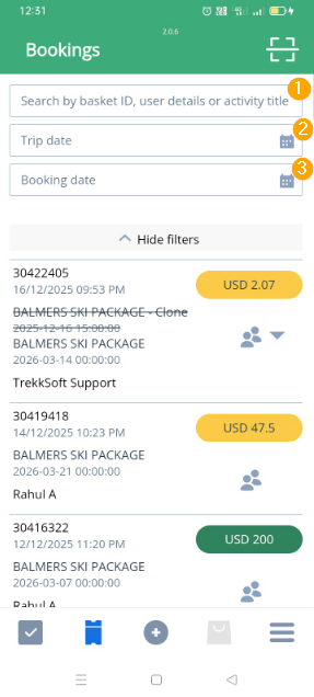 - Search booking by Basket ID, User details (like name, email, etc.) or Activity title