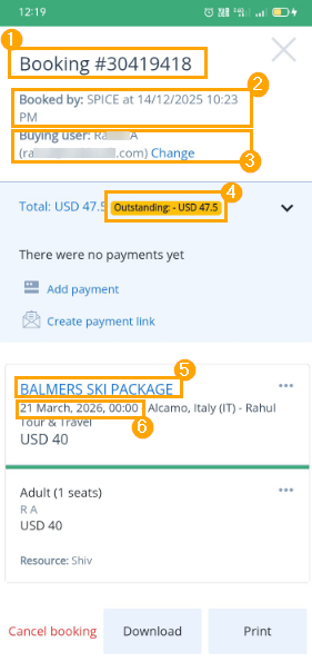 From this view, you have a list of the basket of the bookings. Additional tasks you can do from this view: