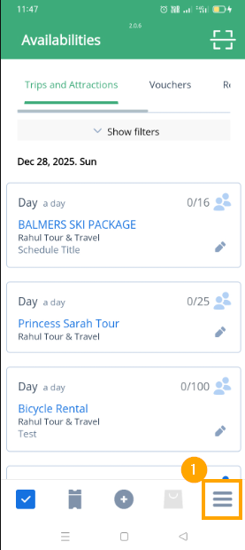 - Schedule type (Rentals, Voucher, Trip/Attraction)