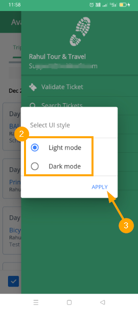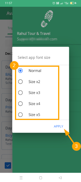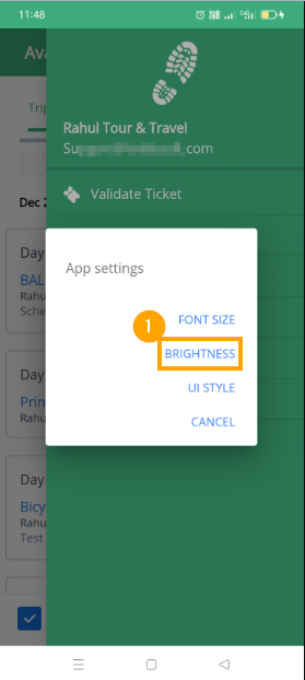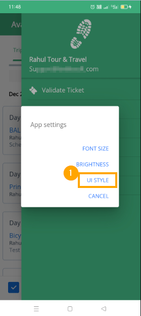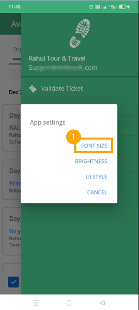 We have a menu item for App Settings from where you can set font size, brightness and UI style for the app. See the screenshot below showing the steps to access this setting: