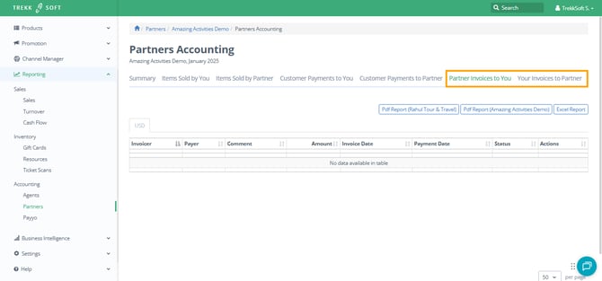 If your business partner also uses a TrekkSoft account to share his activities or resell your activities you can settle your balance through partner accounting.
