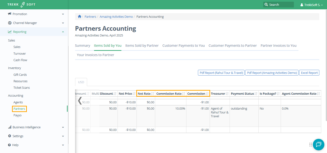 The Partners accounting shows you how many bookings you made for partners, how much commission you earned and how much money you owe to a partner and the same for the partner as well.