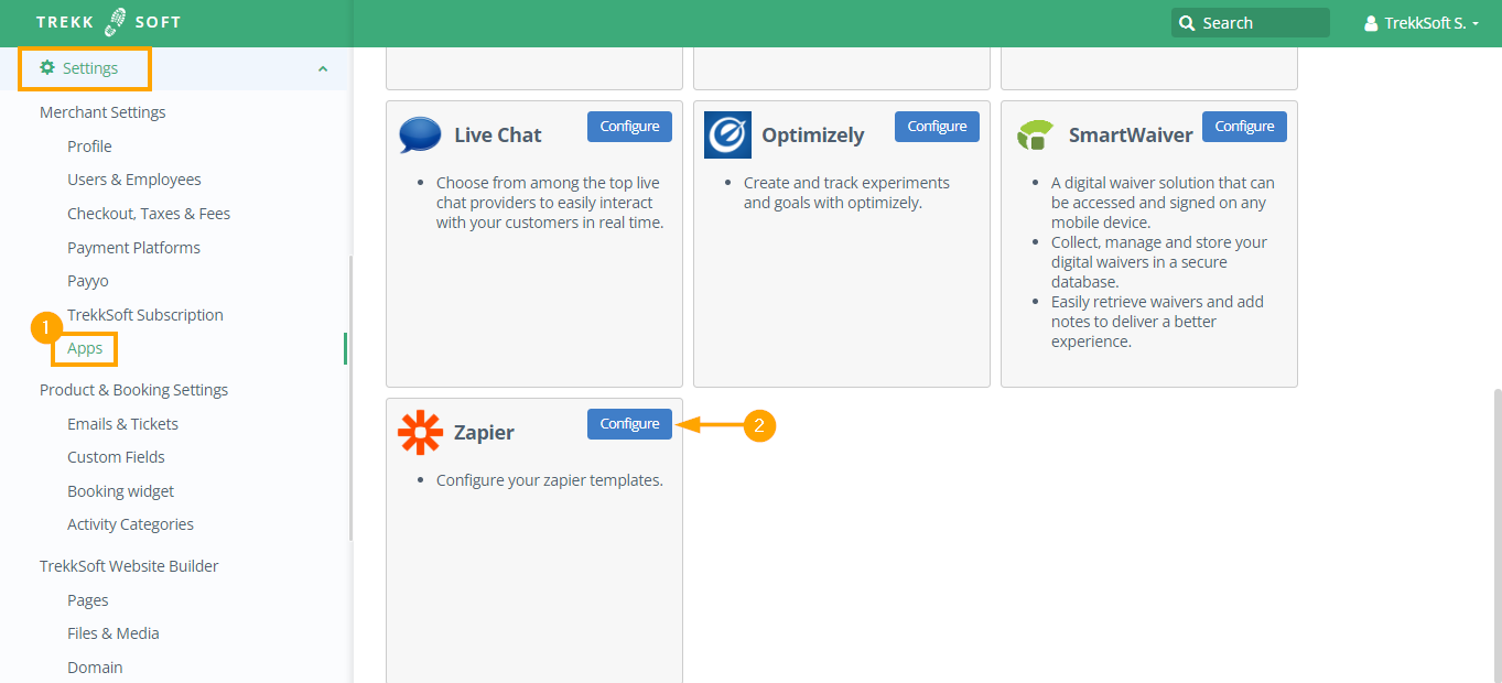 IMPORTANT NOTE! Zaps can only be set up from TrekkSoft to an app, not from an app to TrekkSoft.