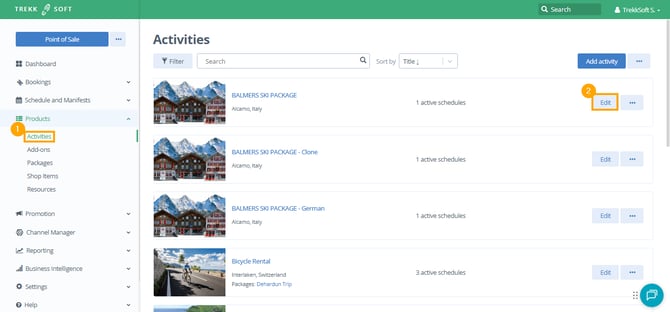 - To see the different versions for each language, go to the Products > Activities section on the left navigation bar.
