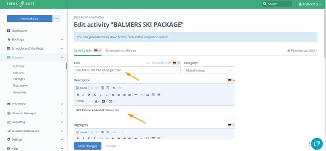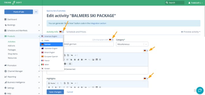 Tours and their pricing categories are also easily translated into different languages in the same way.