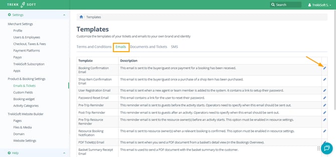 Navigate to Settings > Product & Booking Settings > Email & Tickets in the left navigation menu to view your templates.