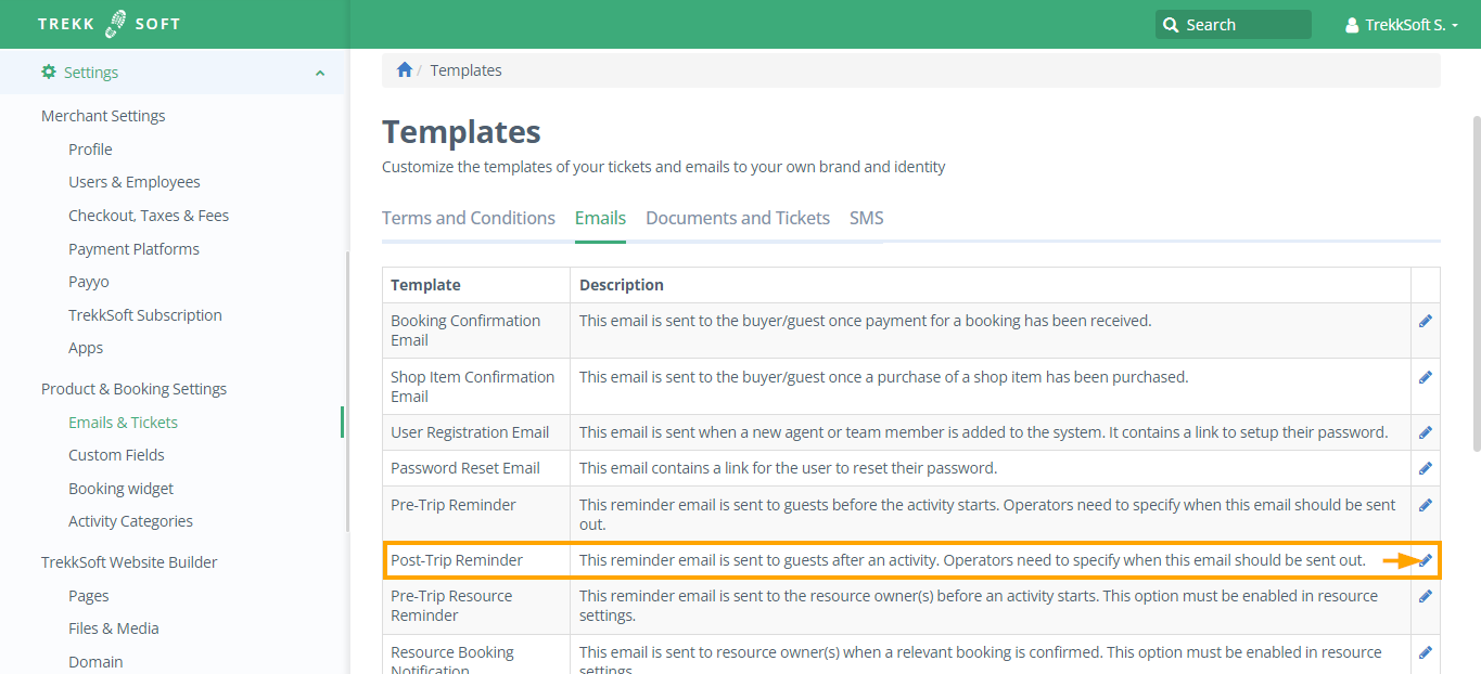 Scroll down to Post-trip Reminder and click on the pencil icon to the right.