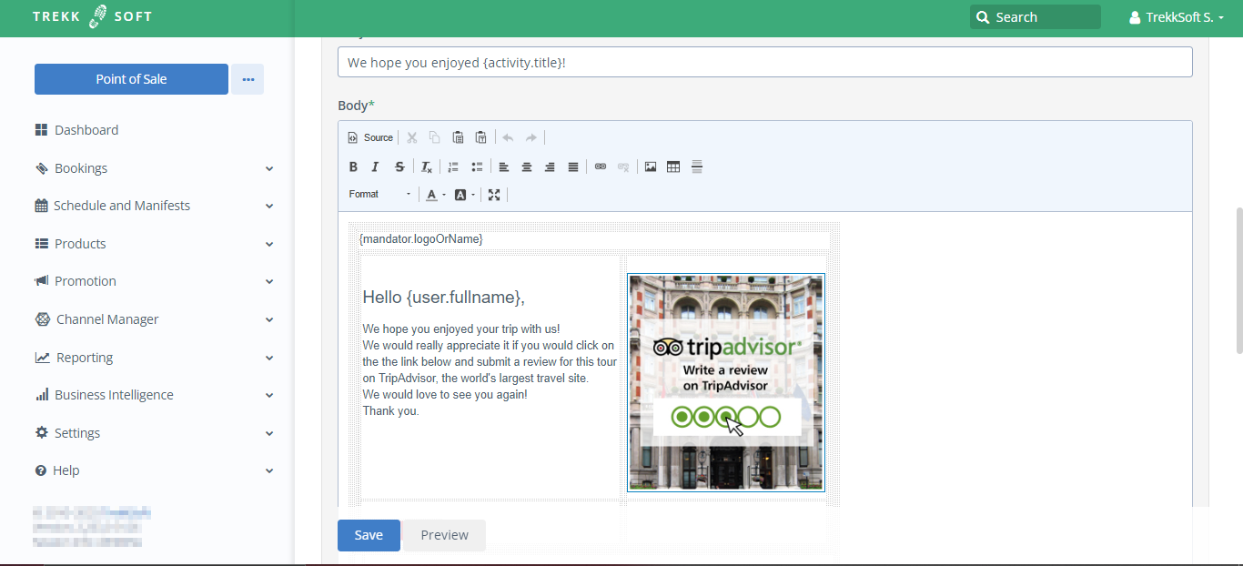 Follow the steps below to configure TripAdvisor widget in TrekkSoft