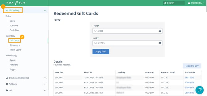 Find out who and when used each one of your TrekkSoft Gift cards and vouchers that have ever been redeemed.