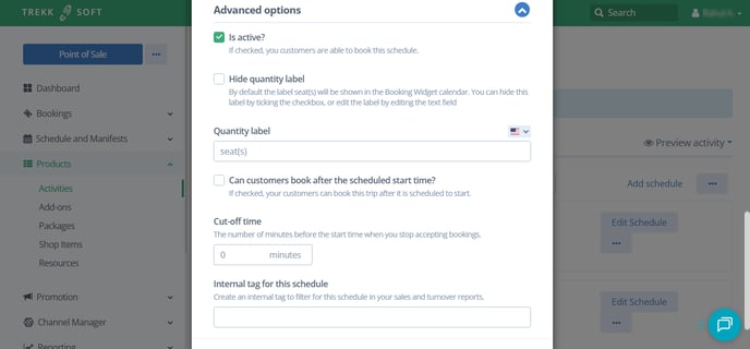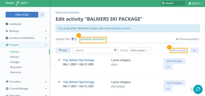 - Once you have created an activity, go to the Schedule and Prices tab.